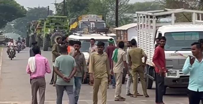 दाऊचौरा मार्ग पर सैकड़ों चालक धरने पर बैठे