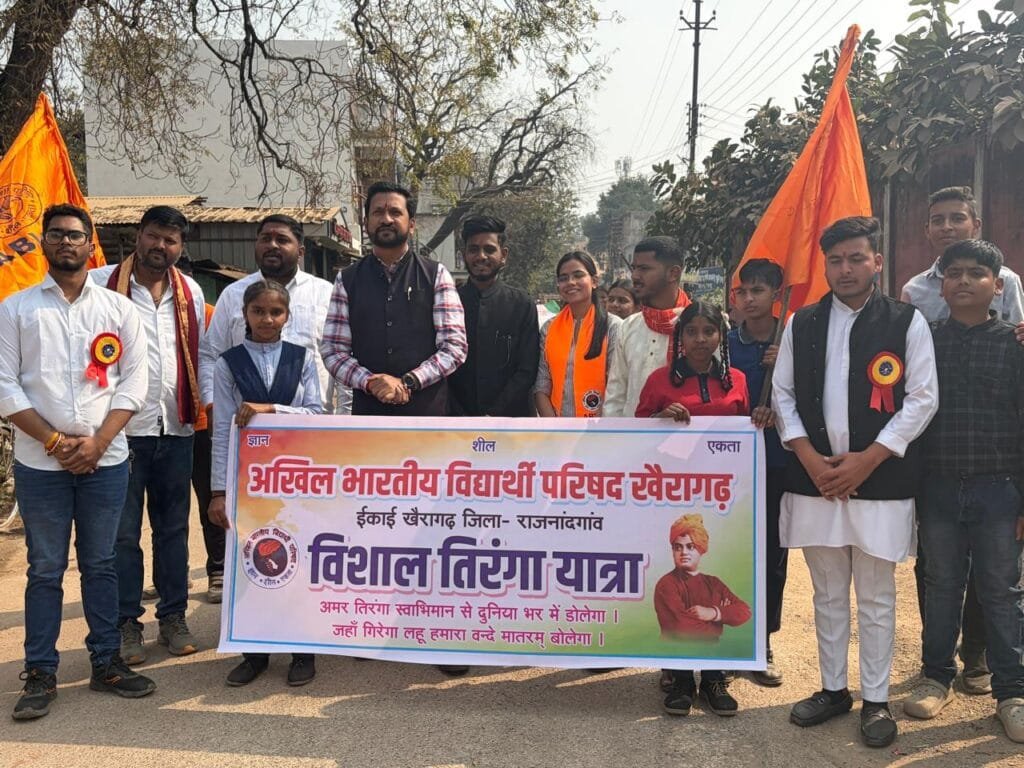 सत्यमेव न्यूज खैरागढ़। अखिल भारतीय संगठन के तत्वावधान में आज शहर में राष्ट्रभक्ति का अद्भुत और भावनात्मक दृश्य देखने को मिला जब 151 फीट लंबा विशाल तिरंगा लेकर भव्य तिरंगा यात्रा निकाली गई। पूरा खैरागढ़ देशभक्ति के रंग में रंगा नजर आया। तिरंगा यात्रा का शुभारंभ अंबेडकर चौक से हुआ जो राजनंदगांव स्टेट हाईवे होते हुए गोल बाजार, राजीव चौक, मस्जिद चौक, अस्पताल चौक, व विश्वविद्यालय मार्ग सहित शहर के प्रमुख मार्गों से होते हुए आगे बढ़ी। यात्रा में विभिन्न स्कूलों के सैकड़ों छात्र-छात्राओं ने उत्साहपूर्वक सहभागिता निभाई। हाथों में तिरंगा थामे बच्चों ने “भारत माता की जय”, “वंदे मातरम्” और “जय हिंद” जैसे गगनभेदी नारों से पूरे वातावरण को राष्ट्रप्रेम से ओत-प्रोत कर दिया। यात्रा के दौरान मार्ग के दोनों ओर खड़े नागरिकों, व्यापारियों और सामाजिक संगठनों ने पुष्पवर्षा एवं तालियों के साथ तिरंगा यात्रा का भव्य स्वागत किया। लोगों ने बच्चों का उत्साहवर्धन करते हुए देशप्रेम की भावना को और सशक्त किया। इस अवसर पर भाजपा के वरिष्ठ नेता एवं जिला पंचायत उपाध्यक्ष विक्रांत सिंह विशेष रूप से उपस्थित रहे। उन्होंने तिरंगा यात्रा में शामिल छात्र-छात्राओं का उत्साहवर्धन करते हुए कहा कि हम सबके लिए सबसे पहले राष्ट्र होना चाहिए उसके बाद बाकी सभी चीजें हैं। अगर राष्ट्र ही नहीं रहेगा तो हमारा अस्तित्व भी नहीं रहेगा। नई पीढ़ी में यह भावना जागृत करना आज की सबसे बड़ी आवश्यकता है। आयोजकों ने बताया कि तिरंगा यात्रा का मुख्य उद्देश्य युवाओं और विद्यार्थियों में राष्ट्रीय एकता, देशप्रेम तथा भारतीय संविधान के प्रति सम्मान की भावना को मजबूत करना है। उन्होंने कहा कि इस तरह के आयोजन नई पीढ़ी को देश की संस्कृति, एकता और अखंडता से जोड़ने में महत्वपूर्ण भूमिका निभाते हैं। तिरंगा यात्रा के सफल आयोजन से शहरवासियों में देशभक्ति का नया जोश और उत्साह देखने को मिला। पूरा खैरागढ़ राष्ट्रप्रेम और गर्व की भावना से सराबोर नजर आया।