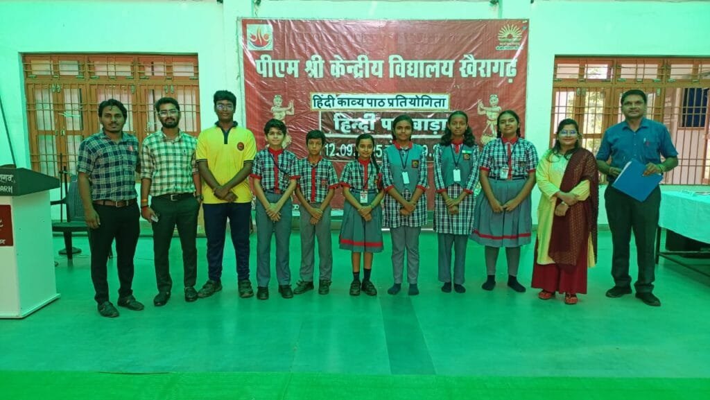 सत्यमेव न्यूज के लिए आकाश तिवारी खैरागढ़। पीएम श्री केंद्रीय विद्यालय खैरागढ़ में 26 सितंबर को हिंदी पखवाड़े का समापन राजभाषा सम्मेलन एवं ऑनलाइन हिंदी परिचर्चा के साथ हुआ। कामकाज और अभिव्यक्ति का सशक्त माध्यम हिंदी भाषा विषय पर आयोजित इस परिचर्चा में नगर राजभाषा कार्यान्वयन समिति राजनांदगांव के केंद्र सरकार के अधिकारियों, कार्मिकों और विद्यालयों के शिक्षकों ने सहभागिता दी।कार्यक्रम के मुख्य अतिथि मुनीष शर्मा (अध्यक्ष, नगर राजभाषा कार्यान्वयन समिति एवं प्रबंधक, बैंक ऑफ बड़ौदा राजनांदगांव) ने कहा कि हिंदी केवल अभिव्यक्ति की ही नहीं, बल्कि कार्यालयीन कामकाज की भी सरल और सशक्त भाषा है। विशिष्ट अतिथि सुदीपा राय सचिव, नगर राजभाषा कार्यान्वयन समिति ने हिंदी के महत्व पर प्रकाश डाला। विद्यालय के प्रभारी प्राचार्य अंजय कुमार ने कहा कि कामकाज और अभिव्यक्ति दोनों में हिंदी को अपनाने से सांस्कृतिक पहचान मजबूत होगी और भाषा विश्व मंच पर सशक्त रूप से उभरेगी। समापन कार्यक्रम का संचालन डॉ.योगेंद्र पांडेय एवं सुश्री गीतांजली ने किया। धन्यवाद ज्ञापन डॉ.पांडेय ने किया।हिंदी पखवाड़े के दौरान विभिन्न प्रतियोगिताएँ भी आयोजित हुई। भाषण प्रतियोगिता, काव्य पाठ, सुलेख, चित्र वर्णन और कहानी लेखन में विद्यार्थी व शिक्षक वर्ग ने उत्साहपूर्वक भाग लिया। इसमें अनुभूति श्रीवास्तव, ईशा वर्मा, वीणा धुर्वे, मान्यता साहू, नेहा वर्मा, खुशी सिन्हा, गौरांग निनावे, चंचल वर्मा, आशिया धुर्वे, हर्ष शिववंशी, स्वरा वर्मा, टूभ्या साहू, पूर्वी जंघेल सहित कई प्रतिभागियों ने विभिन्न वर्गों में स्थान प्राप्त किया। कार्यालयीन कार्य में हिंदी के प्रयोग को बढ़ावा देने के लिए हिंदी कार्यशाला एवं राजभाषा पुस्तक प्रदर्शनी भी आयोजित हुई। समापन अवसर पर प्रार्थना सभा में विशेष कार्यक्रम रखा गया जिसमें छात्रा ट्विंकल साहू ने हिंदी पर कविता प्रस्तुत की। प्राचार्य अंजय कुमार ने सभी शिक्षकों, विद्यार्थियों और सहयोगियों की सराहना करते हुए हिंदी के निरंतर संवर्धन का आह्वान किया।
