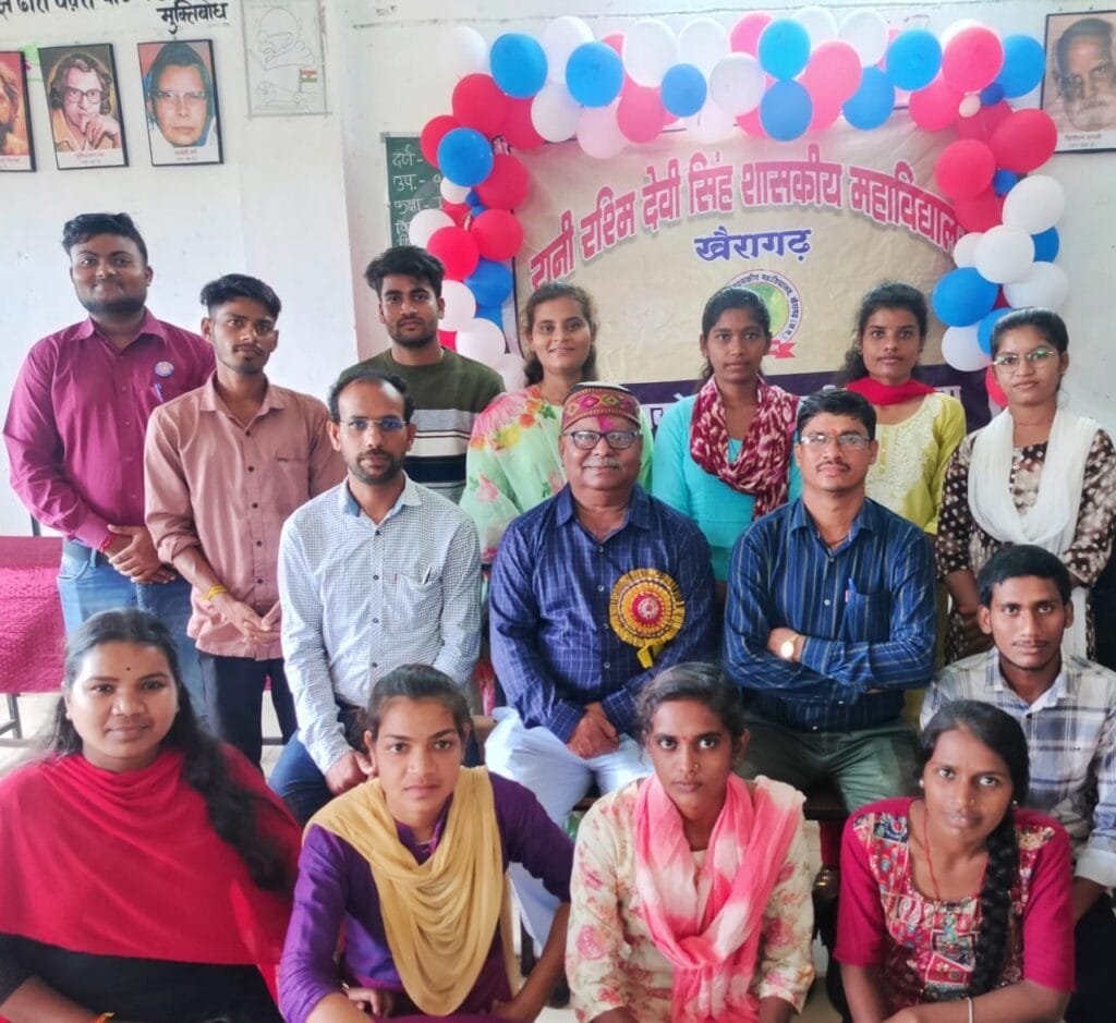 सत्यमेव न्यूज के लिए आकाश तिवारी खैरागढ़। रानी रश्मिदेवी सिंह शासकीय महाविद्यालय खैरागढ़ के एम.ए. हिन्दी विभाग में साहित्य परिषद 2025–26 का गठन प्राचार्य डॉ.ओ.पी. गुप्ता के निर्देशन एवं पूर्व छात्रसंघ प्रभारी जे.के. वैष्णव की अध्यक्षता में संपन्न हुआ। परिषद का गठन प्रावीण्यता के आधार पर प्रो. यशपाल जंघेल एवं डॉ.उमेंद चन्देल द्वारा किया गया। नवगठित परिषद में लीना वर्मा को अध्यक्ष गजेन्द्र वर्मा को उपाध्यक्ष अनसुईया निषाद को सचिव, रीतिका धुर्वे को सहसचिव, टिकेन्द्र वर्मा को सांस्कृतिक सचिव तथा कल्पना वर्मा को साहित्यिक सचिव की जिम्मेदारी सौंपी गई वहीं सदस्य के रूप में दुर्जन वर्मा, चंचल वर्मा, दिव्या धुर्वे, दुर्गा साहू, गौरी यादव, वंदना वर्मा एवं मोनिका देवांगन का चयन किया गया।