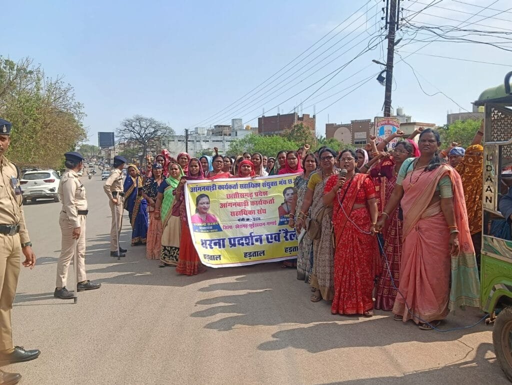 खैरागढ़ में आंगनबाड़ी कार्यकर्ताओं ने शासन के खिलाफ किया उग्र प्रदर्शन