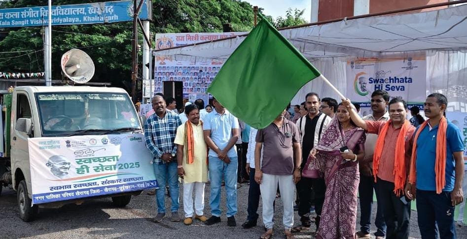 सत्यमेव न्यूज के लिए मनोहर सेन खैरागढ़। खैरागढ़ में गरिमामय कार्यक्रम के साथ स्वच्छता ही सेवा अभियान 2025 की शुरुआत हुई। नगर पालिका कार्यालय से बस स्टैंड तक निकली स्वच्छता रैली नागरिकों व स्वच्छता मित्रों को शपथ दिलाई गई और कचरा संग्रहण वाहनों को हरी झंडी दिखाकर अभियान का औपचारिक शुभारंभ किया गया। इस अभियान के दौरान विशेष तौर पर आत्मनिर्भर खैरागढ़ अभियान एवं निर्मल त्रिवेणी महाभियान के स्वयंसेवी मौजूद रहे। नगर पालिका अध्यक्ष गिरजा चंद्राकर, सांसद प्रतिनिधि भगवत शरण सिंह, पूर्व जिला पंचायत सभापति धम्मन साहू, जिला पंचायत सीईओ प्रेम कुमार पटेल, एसडीएम टंकेश्वर प्रसाद साहू, सीएमओ कोमल ठाकुर सहित जनप्रतिनिधि, अधिकारी, विद्यालय व महाविद्यालय की छात्राएँ और महिला संगठन की प्रतिनिधियाँ मौजूद थीं। रैली में कर्मचारियों, स्वच्छता दीदियों और नागरिकों ने बढ़-चढ़कर भाग लिया तथा नारे लगाकर स्वच्छता का संदेश दिया। बस स्टैंड परिसर की श्रमदान कर सफाई भी की गई।