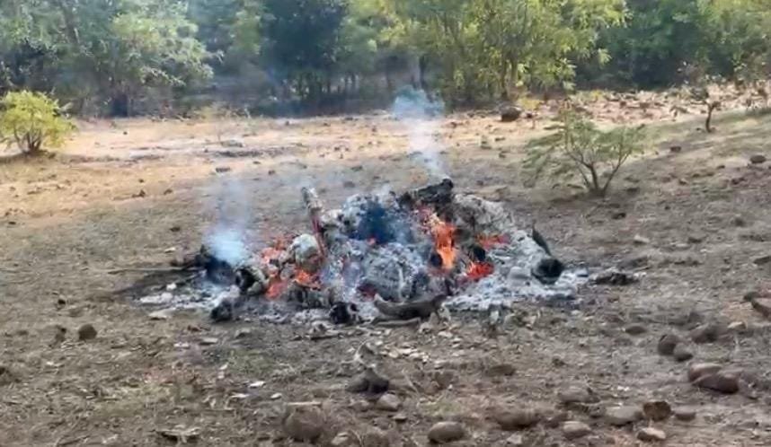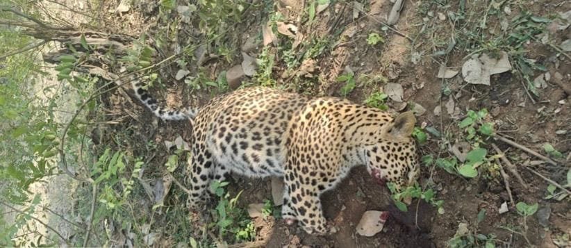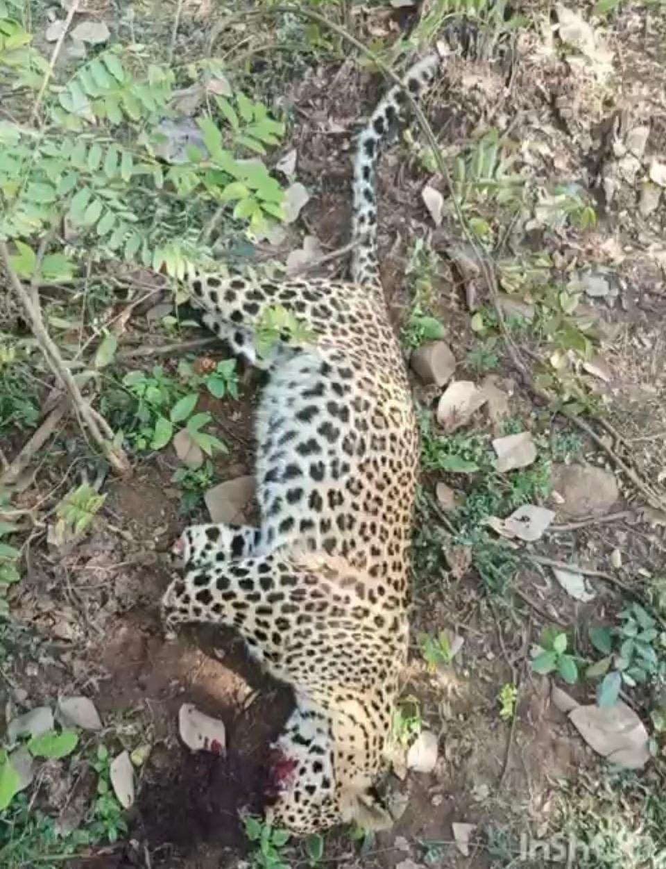 मृत तेंदुए के पंजे, नाखून और जबड़े के दाँत काटकर ले गए शिकारी