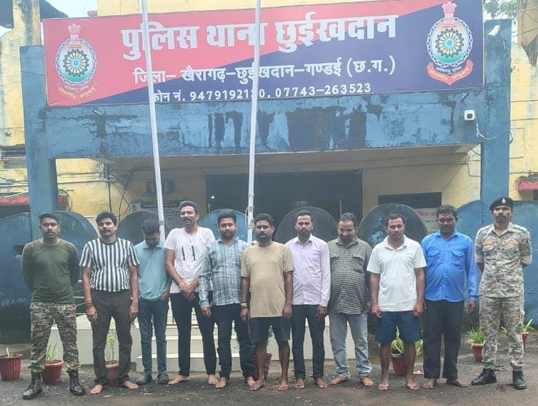छुईखदान पुलिस की बड़ी कार्रवाई 9 जुआरी गिरफ्तार