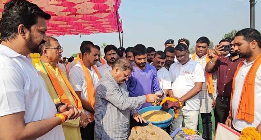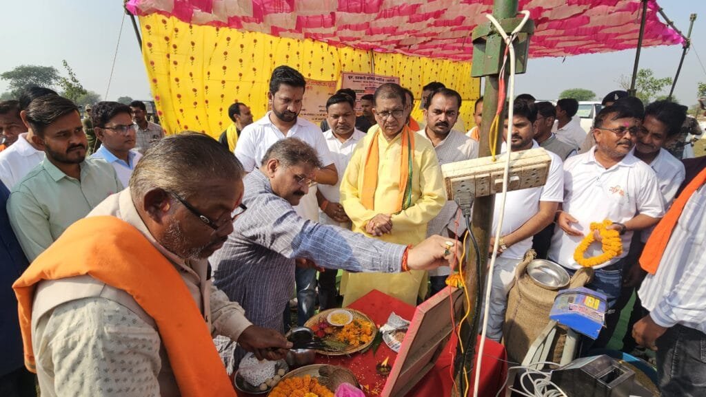सांसद ने पूजा-अर्चना कर किसानों की उपज की तौल से दी प्रक्रिया को गति