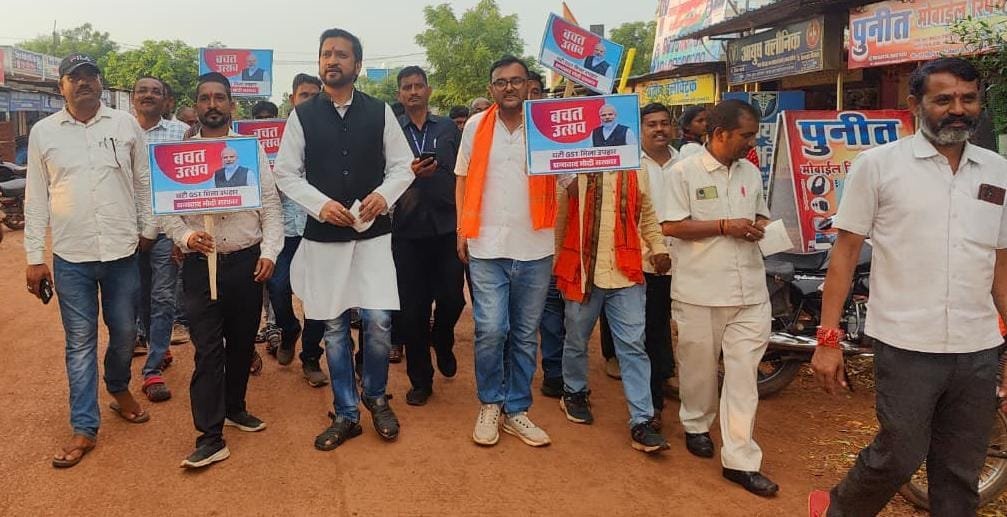 इसके पश्चात विक्रांत सिंह ने साप्ताहिक हाट-बाजार का भ्रमण कर आमजन से संवाद किया और जीएसटी 2.0 के लाभ बताए। इस दौरान अवंती चौक स्थित माँ दुर्गा पंडाल में उन्होंने पूजा-अर्चना कर क्षेत्र की सुख-समृद्धि की कामना की। साथ ही वार्ड क्रमांक 4 में नाली निर्माण कार्य का भूमिपूजन भी किया। कार्यक्रम में आशीष पारख, विजयलाल गुप्ता, लाला वर्मा, जैनेन्द्र जंघेल, मंडल महामंत्री मुकेश वर्मा, उत्तम वर्मा, राकेश वर्मा, भाजयुमो मंडल अध्यक्ष नितेश उपाध्याय, जनपद सदस्य प्रतिनिधि पूर्णचंद गुप्ता, देवकुमार वर्मा, शिवांश बहादुर, गजेन्द्र वर्मा, राजेश वर्मा सहित अनेक कार्यकर्ता उपस्थित रहे।