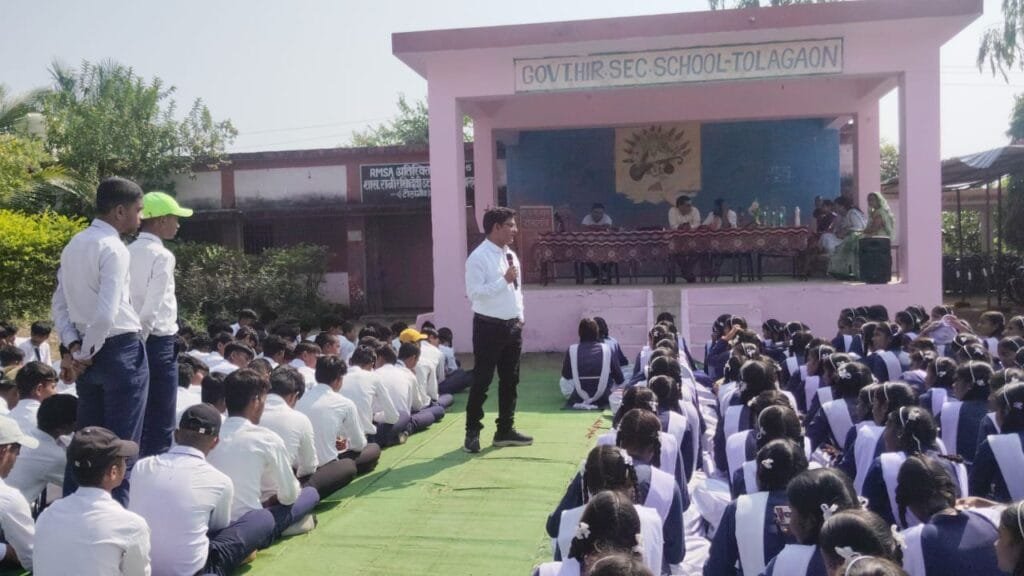 सत्यमेव न्यूज खैरागढ़। ब्लॉक के अंतिम छोर पर बसे शासकीय उच्चतर माध्यमिक शाला टोलागांव में विद्यार्थियों के सर्वांगीण विकास और उज्जवल भविष्य निर्माण के उद्देश्य से कैरियर गाइडेंस, मोटिवेशनल स्पीच एवं नैतिक शिक्षा सत्र का आयोजन किया गया। कार्यक्रम में विशेषज्ञ वक्ता के रूप में एसडीएम टंकेश्वर प्रसाद साहू ने विद्यार्थियों को लक्ष्य निर्धारण, समय प्रबंधन और सकारात्मक सोच के महत्व पर प्रेरक मार्गदर्शन दिया। उन्होंने कहा कि जीवन में सफलता पाने के लिए दृढ़ निश्चय, मेहनत और अनुशासन सबसे आवश्यक गुण हैं। सत्र के दौरान विद्यार्थियों ने उत्साहपूर्वक प्रश्न पूछे और अपने विचार साझा किए। शिक्षकों ने बताया कि ऐसे आयोजनों से छात्रों में आत्मविश्वास बढ़ता है और वे अपने भविष्य के प्रति अधिक सजग और केंद्रित होते हैं।