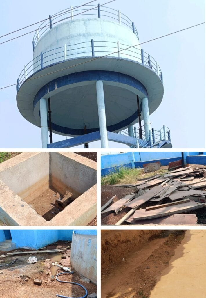 कार्य एजेंसी मेसर्स तापड़िया कंसल्टेंसी (प्रो.विष्णु तापड़िया) द्वारा लगभग 186.19 लाख रुपये की लागत से उच्च स्तरीय जलागार (120 केएल, 12 मीटर स्टेजिंग), 8452 मीटर यूपीवीसी पाइपलाइन, 8520 मीटर एचडीपीई पाइपलाइन, 30 केएल संपवेल टंकी, बाउंड्रीवाल और सबमर्सिबल पंप सहित अन्य निर्माण कार्य किए जाने हैं हालांकि निर्माण स्थल पर लगाए गए साइन बोर्ड में कार्य प्रारंभ एवं पूर्णता तिथि का उल्लेख नहीं है जिससे कार्य की पारदर्शिता और समय-सीमा पर प्रश्न उठ रहे हैं। टंकी का ढांचा लगभग तैयार बताया जा रहा है किंतु बिजली आपूर्ति के अभाव में टेस्टिंग नहीं हो पा रही है।
