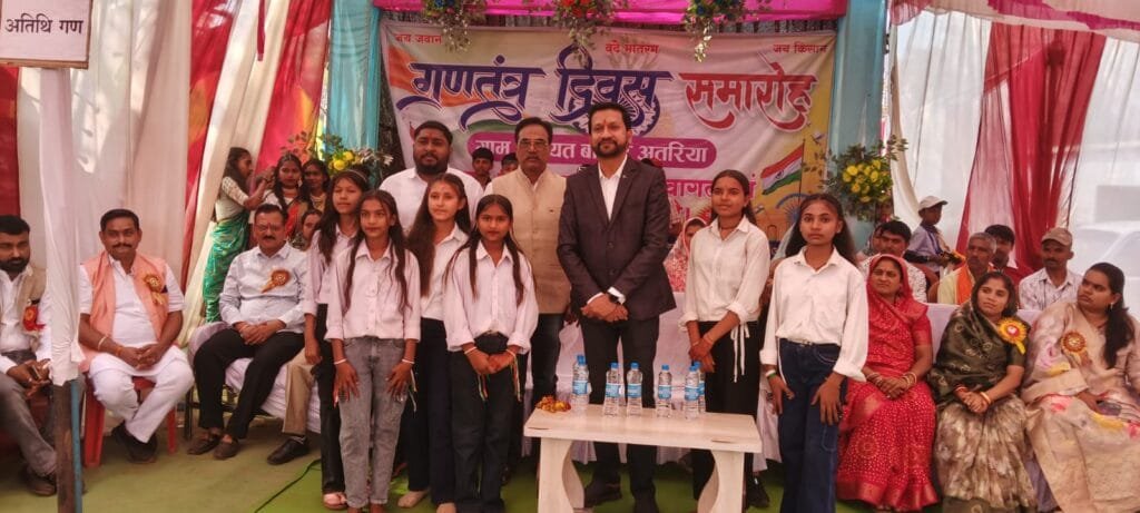 सत्यमेव न्यूज बाजार अतरिया। अवंती चौक में गणतंत्र दिवस का आयोजन सामूहिक रूप से हर्षोल्लास और देशभक्ति के वातावरण में किया गया। इस अवसर पर तीन शासकीय एवं चार निजी विद्यालयों के छात्र-छात्राओं ने अपनी शानदार सांस्कृतिक प्रस्तुतियों से समारोह की शोभा बढ़ाई। सभी विद्यालयों के बच्चों ने देशभक्ति से ओत-प्रोत रंगारंग सांस्कृतिक कार्यक्रम प्रस्तुत कर दर्शकों की खूब तालियाँ बटोरीं। कार्यक्रम में मुख्य अतिथि विक्रांत सिंह उपाध्यक्ष जिला पंचायत केसीजी रहे वहीं विशिष्ट अतिथि के रूप में विकेश गुप्ता, जमुना नरेश कुर्रे सभापति जिला पंचायत, दीक्षा पूर्णचंद गुप्ता सभापति जनपद पंचायत, बिमला वर्मा सरपंच, देवकुमार सेन मंडल भाजपा अध्यक्ष अतरिया, केशव चंदेल भाजपा नेता सहित जनप्रतिनिधि एवं गणमान्य नागरिक मौजूद रहे। इस अवसर पर ग्राम पंचायत अतरिया के तत्वावधान में आयोजित सांस्कृतिक प्रतियोगिता के परिणाम एवं पुरस्कार वितरण भी किया गया। प्रथम स्थान पर सरस्वती शिशु मंदिर (प्रस्तुति: रामलीला मंचन, नेतृत्व: हरि प्रसाद उपाध्याय)