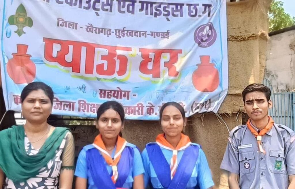 भीषण गर्मी में स्काउट-गाइड छात्रों की मिसाल राहगीरों को पिलाया ठंडा पानी