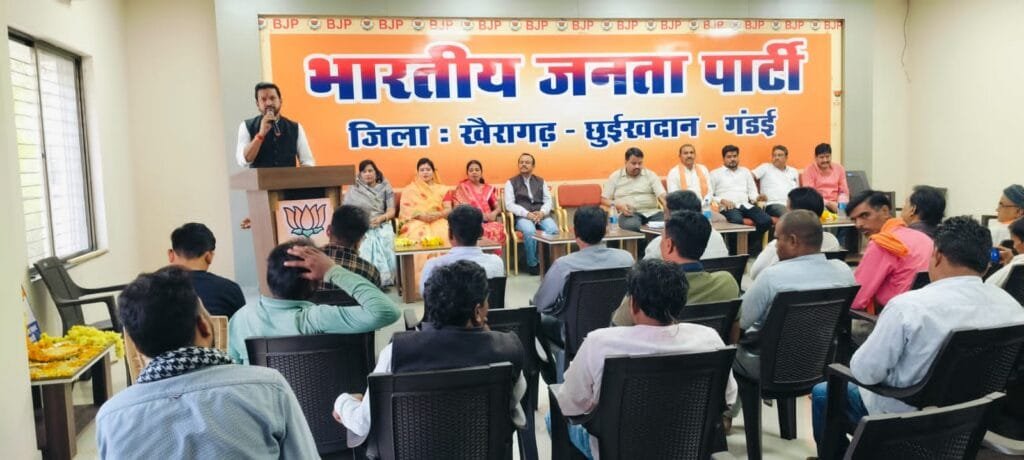 सत्यमेव न्यूज खैरागढ़। भारतीय जनता पार्टी खैरागढ़ शहर मंडल की ओर से सोमवार को मतदाता सूची के विशेष गहन पुनरीक्षण (एसआईआर 2025) को लेकर जिला भाजपा कार्यालय में बैठक आयोजित की गई। बैठक में जिला पंचायत उपाध्यक्ष विक्रांत सिंह मुख्य अतिथि के रूप में उपस्थित रहे। इस अवसर पर जिला भाजपा महामंत्री शशांक ताम्रकार, नगर पालिका अध्यक्ष गिरजा चंद्राकर, दिनेश वर्मा, तथा अनेक बूथ संयोजक व पार्टी पदाधिकारी बड़ी संख्या में मौजूद थे। बैठक को संबोधित करते हुए विक्रांत सिंह ने कहा कि मतदाता सूची का शुद्धिकरण लोकतंत्र की मजबूती का मूल है। उन्होंने कार्यकर्ताओं से अपील की कि वे बूथ स्तर पर सक्रिय रहकर नए मतदाताओं के नाम फॉर्म-6 के माध्यम से जोड़ें और गलत या मृत नामों को फॉर्म-7 से हटवाएं। विक्रांत सिंह ने कहा कि यह सिर्फ संगठनात्मक दायित्व नहीं बल्कि लोकतांत्रिक जिम्मेदारी है कि कोई भी पात्र मतदाता सूची से वंचित न रहे। उन्होंने कहा कि भाजपा कार्यकर्ताओं की पहचान उनकी जनसेवा और संगठनात्मक सक्रियता से होती है इसलिए सभी कार्यकर्ता इस अभियान को सफलता की दिशा में ले जाएं। कार्यक्रम में जनपद पंचायत के उपाध्यक्ष लखन साहू, नगर पालिका के सभापति विनय देवांगन, पार्टी के पदाधिकारीगण नीलिमा गोस्वामी, संजय शर्मा, कीर्ति वर्मा, डोरेलाल साहू, ऋषभ सिंह सहित अनेक कार्यकर्ता उपस्थित रहे।