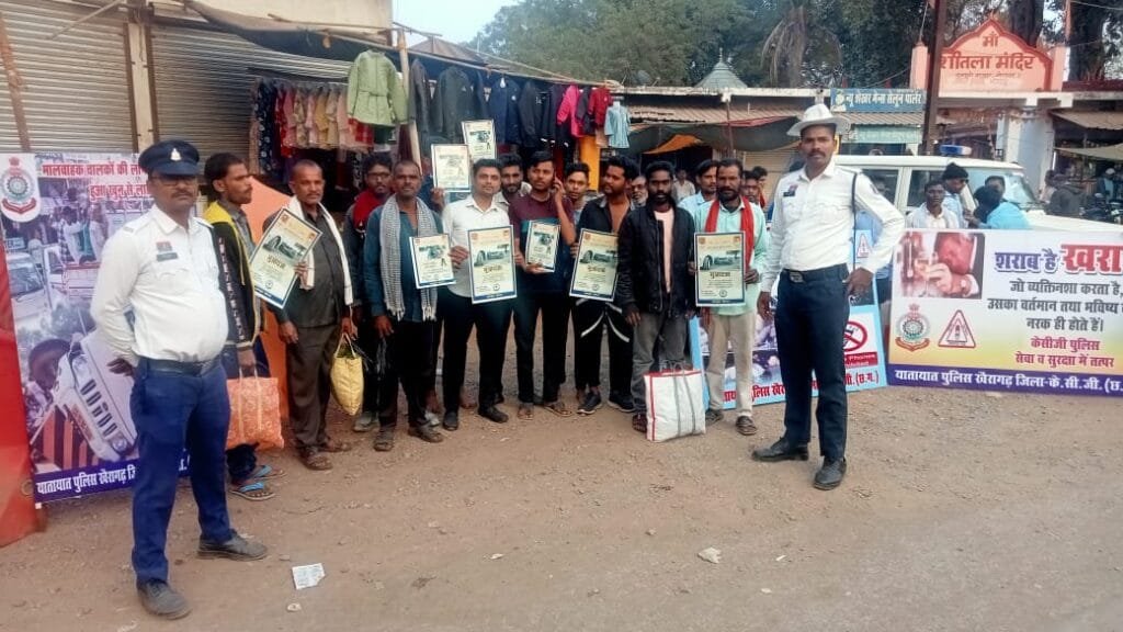 सत्यमेव न्यूज खैरागढ़। जिला पुलिस केसीजी द्वारा राष्ट्रीय सड़क सुरक्षा माह 2026 के अंतर्गत जनजागरूकता अभियान लगातार संचालित किया जा रहा है। इसी कड़ी में जिले के बाजार-हाट व चौक-चौराहों पर आम नागरिकों को यातायात नियमों की जानकारी दी गई और सड़क सुरक्षा के प्रति जागरूक किया गया। सड़क दुर्घटनाओं की रोकथाम एवं मृत्यु दर में कमी लाने के उद्देश्य से 01 जनवरी से 31 जनवरी 2026 तक राष्ट्रीय सड़क सुरक्षा माह मनाया जा रहा है। अभियान के दौरान जिला पुलिस केसीजी द्वारा नित नए प्रयोग करते हुए सुरक्षात्मक उपायों के साथ साथ आम लोगों को यातायात नियमों का पालन करने हेतु समझाइश दी जा रही है। 04 जनवरी को आयोजित जागरूकता कार्यक्रम में पुलिस कर्मियों ने बैनर पोस्टर के माध्यम से सड़क सुरक्षा संदेश प्रसारित किए। दोपहिया वाहन चालकों को हेलमेट पहनने चारपहिया वाहन चालकों को सीट बेल्ट का उपयोग करने नशे की हालत में वाहन न चलाने तथा यातायात नियमों का अनिवार्य रूप से पालन करने की अपील की गई। जिला पुलिस केसीजी द्वारा बताया गया कि पूरे माह जिलेभर में विभिन्न स्थानों पर जागरूकता शिविर रैली एवं जनसंपर्क कार्यक्रम आयोजित किए जाएंगे ताकि सड़क दुर्घटनाओं पर प्रभावी नियंत्रण किया जा सके और सुरक्षित यातायात को बढ़ावा दिया जा सके।