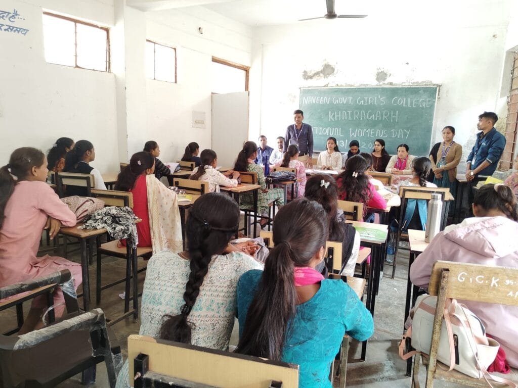सत्यमेव न्यूज खैरागढ़। नवीन शासकीय कन्या महाविद्यालय खैरागढ़ में राष्ट्रीय महिला दिवस उत्साह और गरिमा के साथ मनाया गया। कार्यक्रम के दौरान छात्राओं और शिक्षकों ने महिला सशक्तिकरण शिक्षा और सामाजिक योगदान पर सार्थक चर्चा की। कार्यक्रम की संयोजक टिकेशवरी साहू ने भारत की महान स्वतंत्रता सेनानी एवं कवयित्री सरोजिनी नायडू के जीवन एवं उनके बहुआयामी व्यक्तित्व पर विस्तार से प्रकाश डाला। उन्होंने बताया कि सरोजिनी नायडू ने भारतीय स्वतंत्रता आंदोलन के साथ साथ महिला अधिकारों को सशक्त बनाने में महत्वपूर्ण भूमिका निभाई। मुख्य अतिथि प्राध्यापक दुर्वासा सिन्हा ने वैदिक काल से लेकर वर्तमान समय तक महिलाओं की स्थिति और उनके सामाजिक विकास की यात्रा का विस्तृत वर्णन किया। उन्होंने कहा कि बदलते दौर में महिलाएं हर क्षेत्र में उल्लेखनीय उपलब्धियां हासिल कर रही हैं। राष्ट्रीय महिला दिवस के अवसर पर ज्ञानवर्धक क्विज प्रतियोगिता का आयोजन भी किया गया जो समस्त स्टॉफ की उपस्थिति एवं निगरानी में सम्पन्न हुआ। प्रतियोगिता में प्रतिभागियों ने उत्साहपूर्वक भाग लिया जिसमें गीतेश पटेल ने प्रथम स्थान प्राप्त किया। मांसी लोधी द्वितीय तथा सुमन यादव तृतीय स्थान पर रहीं। कार्यक्रम के सफल आयोजन में टिकेशवरी साहू, डॉ.मेधाविनी तुरे , दुर्वासा सिन्हा, अजय कुमार, मानिकचंद बजारे, मैथिली पटेल, वर्षा साहू, पायल सुधाकर, वासुदेव साहू, शिक्षा जोशी, शेखर, सौरभ साहू तथा सौम्या गुप्ता सहित महाविद्यालय परिवार का सक्रिय सहयोग रहा। यह आयोजन छात्राओं में जागरूकता आत्मविश्वास और प्रतिस्पर्धात्मक भावना विकसित करने की दिशा में महत्वपूर्ण साबित हुआ है।