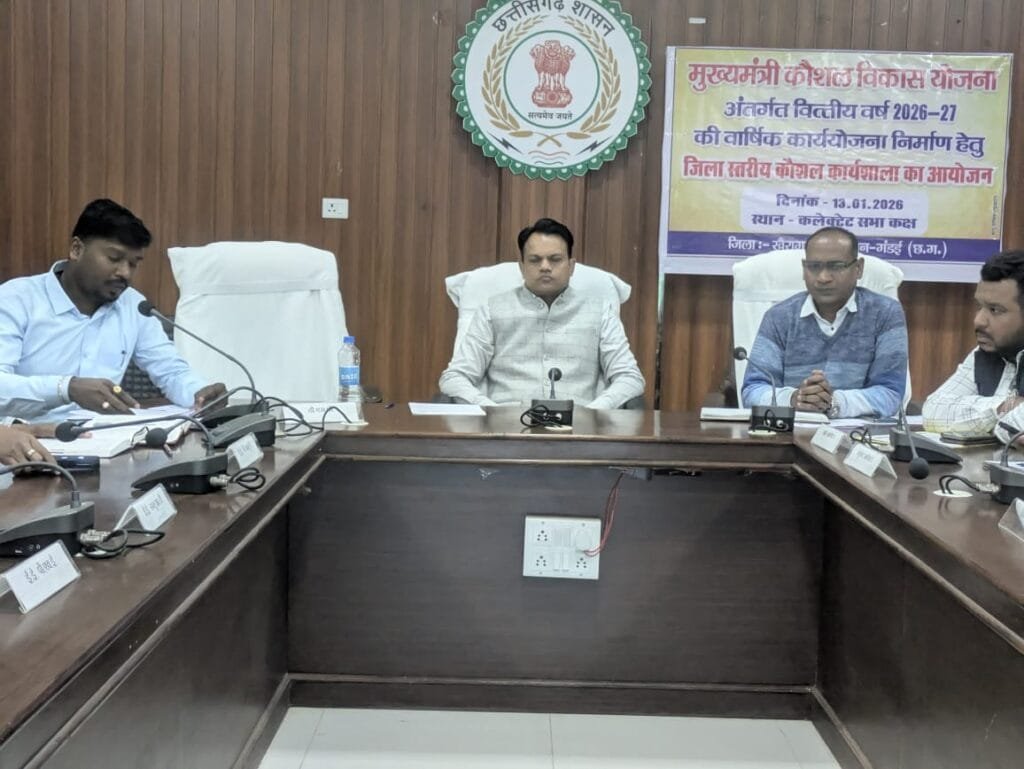 सत्यमेव न्यूज खैरागढ़। मुख्यमंत्री कौशल विकास योजना के तहत वित्तीय वर्ष 2026-27 की मांग आधारित वार्षिक कौशल कार्ययोजना तैयार करने हेतु जिला स्तरीय कार्यशाला का आयोजन कलेक्टर सभा कक्ष खैरागढ़ में किया गया। कार्यशाला जिला कौशल विकास प्राधिकरण के तत्वावधान में आयोजित हुई जिसकी अध्यक्षता कलेक्टर इंद्रजीत सिंह चंद्रवाल ने की। कार्यशाला में जिला पंचायत के मुख्य कार्यपालन अधिकारी प्रेम कुमार पटेल, सहायक संचालक एवं उपसंचालक पंचायत गीत कुमार सिन्हा, जिला व्यापार एवं उद्योग महाप्रबंधक प्रणय बघेल सहित विभिन्न विभागों के अधिकारी प्रशिक्षण प्रदाता संस्थान एवं नियोजक प्रतिनिधि उपस्थित रहे। बैठक का उद्देश्य जिले में रोजगार आधारित कौशल मांग का आकलन कर वर्ष 2026-27 के लिए कार्ययोजना तैयार करना रहा। कृषि, उद्योग, स्वास्थ्य, ग्रामीण विकास, श्रम एवं महिला एवं बाल विकास विभाग से प्राप्त सुझावों के आधार पर कृषि एवं एग्री ऑटोमेशन, ऑटोमोबाइल, आईटी, हेल्थ केयर, कंस्ट्रक्शन, ग्रीन जॉब्स, इलेक्ट्रॉनिक्स, लॉजिस्टिक्स, टेक्सटाइल, वेल्डर और कारपेंटर जैसे क्षेत्रों को प्राथमिकता दी गई। कलेक्टर इंद्रजीत सिंह चंद्रवाल ने कहा कि स्थानीय जरूरतों के अनुरूप कौशल विकास कार्यक्रम युवाओं को रोजगार से जोड़ने में सहायक होंगे और जिले के समग्र विकास को गति देंगे।
