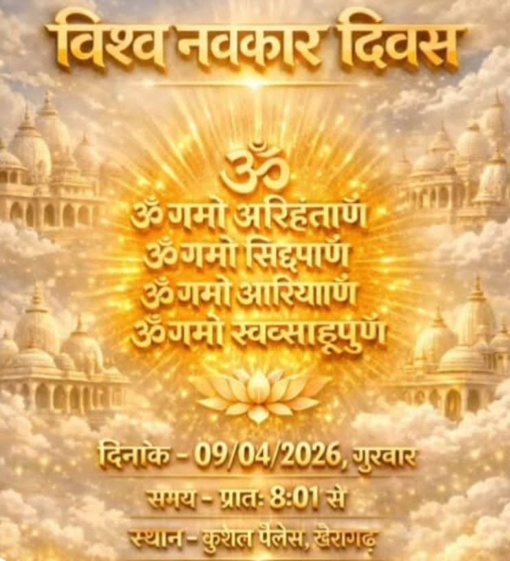 सत्यमेव न्यूज खैरागढ़। विश्व स्तर पर बढ़ती अशांति तनाव और वैचारिक अस्थिरता के बीच आध्यात्मिक साधना और सामूहिक प्रार्थना की आवश्यकता को ध्यान में रखते हुए जैन इंटरनेशनल ट्रेड ऑर्गनाइजेशन (जीतो) द्वारा 9 अप्रैल 2026 गुरुवार को विश्व नवकार दिवस के अवसर पर खैरागढ़ में विशेष आयोजन किया जा रहा है। इस अवसर पर खैरागढ़ के जैन दादा बाड़ी से लगे कुशल पैलेस प्रांगण में प्रातः 08:01 बजे से नवकार मंत्र का सामूहिक जाप किया जाएगा। आयोजन का उद्देश्य विश्व शांति सद्भावना और सकारात्मक ऊर्जा का संदेश जन जन तक पहुंचाना है। कार्यक्रम में बड़ी संख्या में जैन समाज के लोगों की सहभागिता अपेक्षित है जो एक साथ नवकार मंत्र का जाप कर मानवता के कल्याण और शांति की कामना करेंगे। जैन धर्म में नवकार मंत्र को अत्यंत पवित्र प्रभावशाली और सार्वभौमिक माना जाता है। यह किसी एक व्यक्ति या देवता की स्तुति नहीं बल्कि सिद्धों आचार्यों उपाध्यायों और साधु संतों के श्रेष्ठ गुणों का स्मरण है। यही कारण है कि इसे आत्मशुद्धि मानसिक शांति और आध्यात्मिक उन्नति का आधार माना जाता है। आयोजन से जुड़े पदाधिकारियों ने बताया कि नवकार मंत्र केवल धार्मिक आस्था का प्रतीक नहीं बल्कि जीवन को दिशा देने वाला दिव्य संदेश है। यह व्यक्ति को कठिन परिस्थितियों में भी धैर्य शांति और आत्मबल प्रदान करता है। उनका कहना है कि जब समाज एकजुट होकर सकारात्मक सोच और आध्यात्मिक चेतना के साथ आगे बढ़ता है तब शांति और सौहार्द का वातावरण मजबूत होता है। इस आयोजन के माध्यम से जैन समाज द्वारा यह संदेश भी दिया जाएगा कि एक मंत्र, एक भावना और एकजुट समाज के संकल्प के साथ विश्व में शांति और भाईचारे की स्थापना की जा सकती है। जैन समाज के सभी सदस्यों से इस पावन अवसर पर अधिक से अधिक संख्या में उपस्थित होकर विश्व नवकार दिवस के इस विशेष आयोजन में सहभागिता करने का आग्रह किया गया है।