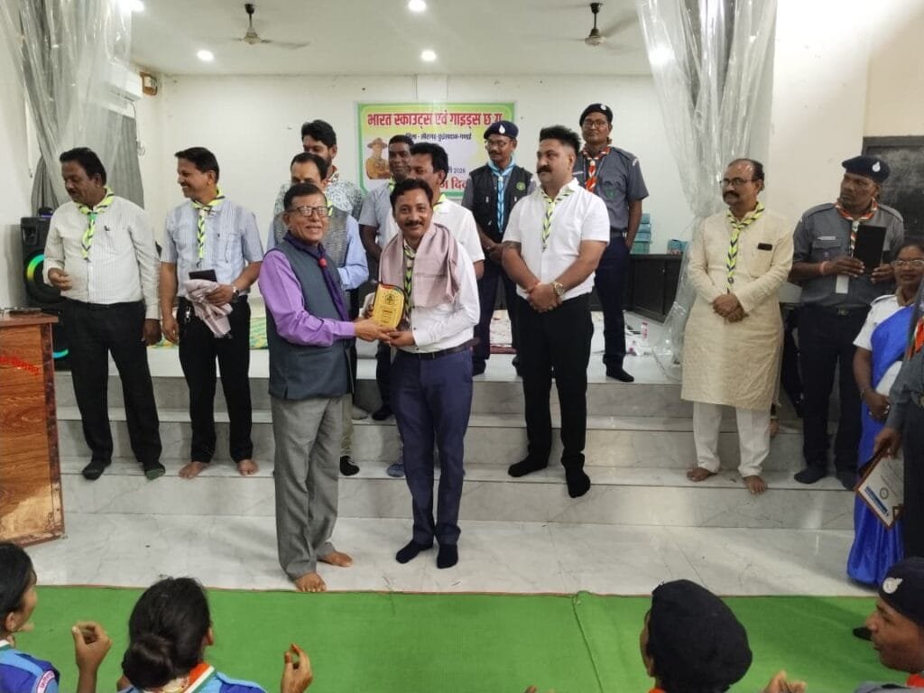 सत्यमेव न्यूज खैरागढ़। भारत स्काउट्स एंड गाइड्स जिला संघ खैरागढ़-छुईखदान-गंडई द्वारा संस्थापक लॉर्ड बेडेन पावेल के जन्मदिवस के अवसर पर जिला स्तरीय चिंतन दिवस श्रद्धा, उत्साह और गरिमामय वातावरण में मनाया गया। कार्यक्रम का आयोजन जिला शिक्षा एवं प्रशिक्षण संस्थान (डाइट) खैरागढ़ के प्रशिक्षण हॉल में किया गया जहाँ स्काउटिंग की मूल भावना सेवा, अनुशासन और भाईचारे का जीवंत स्वरूप देखने को मिला। आयोजन जिला शिक्षा अधिकारी लालजी द्विवेदी एवं डाइट प्राचार्य निहारिका कर्महे के मार्गदर्शन तथा जिला सचिव के.के.वर्मा के नेतृत्व में संपन्न हुआ। कार्यक्रम का शुभारंभ अतिथियों द्वारा लॉर्ड बेडेन पावेल एवं लेडी ओलाव बेडेन पावेल के तैलचित्र पर माल्यार्पण कर किया गया। स्काउटिंग परंपरा के अनुरूप जिला सचिव द्वारा जिला शिक्षा अधिकारी को कमिश्नर स्टाफ पहनाकर सम्मानित किया गया।