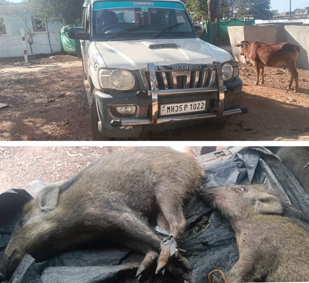 जांच के दौरान वाहन में दो जंगली सूअर पाए गए जिन्हें अवैध रूप से ले जाया जा रहा था। मौके पर ही वाहन को जब्त कर लिया गया और इसमें सवार दो व्यक्तियों को हिरासत में लिया गया। पूछताछ में उनकी पहचान मंगल तिल्लासी वल्द अंजोर तिल्लासी तथा हर्षदिप वल्द जगदीश चव्हान के रूप में हुई, जो वन्य प्राणियों के अवैध शिकार और परिवहन में संलिप्त पाए गए। वन विभाग ने दोनों आरोपियों के खिलाफ वन्य जीव संरक्षण अधिनियम 1972 की धारा 50, 51, 39 एवं 48A के तहत प्रकरण दर्ज किया।