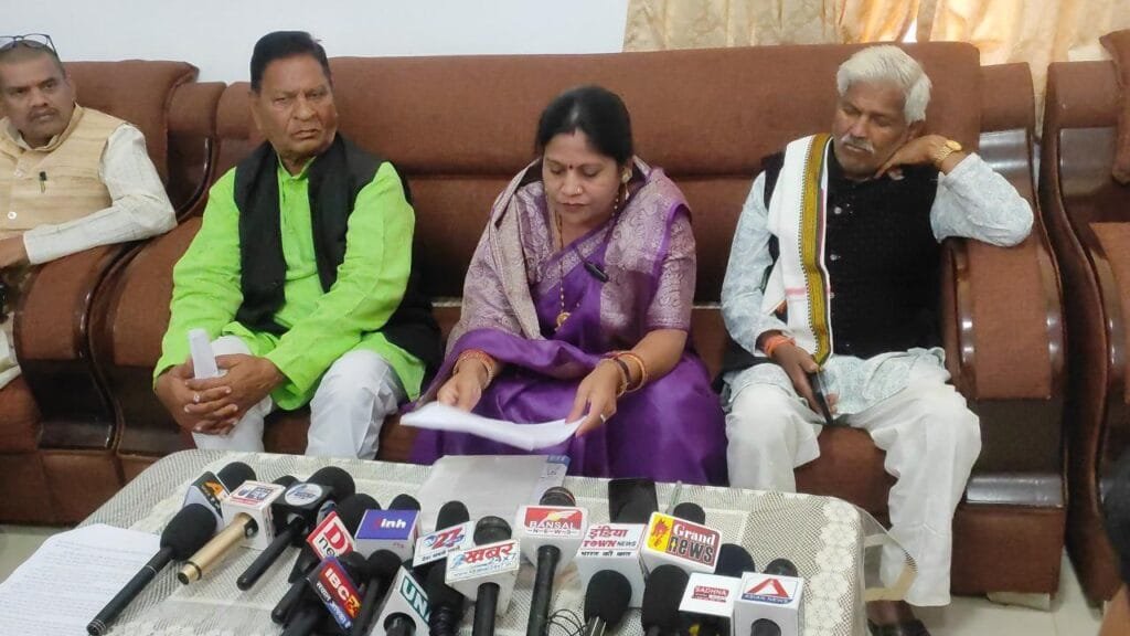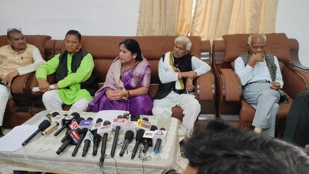 सत्यमेव न्यूज खैरागढ़। खैरागढ़–छुईखदान–गंडई जिले के संडी क्षेत्र में प्रस्तावित 404 हेक्टेयर भूमि पर चूना पत्थर खदान परियोजना को लेकर ग्रामीणों और किसानों में भारी आक्रोश है। परियोजना को लेकर हो रहा है भारी विरोध के बीच खैरागढ़ विधायक श्रीमती यशोदा नीलांबर वर्मा ने प्रेस कॉन्फ्रेंस कर अपना पक्ष रखा। कॉन्फ्रेंस में उनके साथ प्रभावित क्षेत्र के वरिष्ठ नेता एवं समाज से भी मोतीलाल जंघेल, गोकुल चंदेल,मन्नू चंदेल, संजू चंदेल, संतोष यदु, बलदाऊ जंघेल, ज्ञानेंद्र जंघेल, जगेश्वर साहू, ललित साहू,भूपेंद्र वर्मा, वरिष्ठ कांग्रेस नेता नीलांबर वर्मा मनराखन देवांगन, डॉ.अरुण भारद्वाज, पालिका के नेता प्रतिपक्ष दीपक देवांगन सहित जनप्रतिनिधि मौजूद थे।