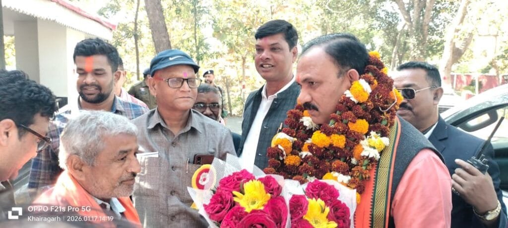 अपने पहले खैरागढ़ प्रवास पर पहुंचे स्वास्थ्य मंत्री श्याम बिहारी जायसवाल को समाज ने अपने “लाडले बेटे” के रूप में आत्मीय स्वागत किया। सामाजिक पदाधिकारियों ने गजमाला पहनाकर उनका अभिनंदन किया। मंत्री की मौजूदगी से समाज के लोगों में विशेष उत्साह और गौरव का भाव देखने को मिला।