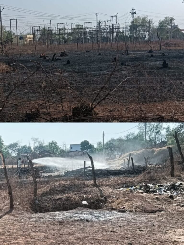 सत्यमेव न्यूज बाजार अतरिया. राज्यपाल के गोद ग्राम सोनपुरी में रविवार को अचानक आग लगने से अफरा-तफरी मच गई। बताया जा रहा है कि बिजली कार्यालय परिसर में लगे दो हाई वोल्टेज तार के आपस में टकराने से निकली चिंगारी सूखी घास पर गिर गई और आग लग गई। देखते ही देखते आग ने विकराल रूप धारण कर लिया और तेजी से पूरे परिसर में फैलने लगी। आग की लपटें आसपास के मकानों की ओर बढ़ने लगीं जिससे ग्रामीणों में दहशत का माहौल बन गया। घटना की सूचना मिलते ही बड़ी संख्या में ग्रामीण मौके पर पहुंचे और तत्काल फायर ब्रिगेड को सूचित किया। दमकल वाहन के पहुंचने से पहले ही ग्रामीणों ने पास के बोर पंपों से पानी लाकर आग बुझाने का प्रयास शुरू कर दिया। ग्रामीणों की सूझबूझ और सामूहिक प्रयास से समय रहते आग पर काफी हद तक काबू पा लिया गया। बाद में पहुंची दमकल टीम ने स्थिति को पूरी तरह नियंत्रित किया। गनीमत रही कि इस घटना में किसी प्रकार की जनहानि नहीं हुई। हालांकि कुछ समय के लिए हालात बेहद गंभीर हो गए थे। स्थानीय लोगों ने बताया कि बिजली कार्यालय परिसर में लंबे समय से साफ-सफाई नहीं की गई थी, वहां सूखी घास, कचरा और अन्य ज्वलनशील सामग्री बड़ी मात्रा में फैली हुई थी जिसके कारण आग ने तेजी से फैल गया। ग्रामीणों ने इस लापरवाही पर नाराजगी जताते हुए नियमित सफाई और रखरखाव की मांग की है। सरपंच प्रतिनिधि गुणेश वर्मा ने बताया कि आग उनके घर के करीब तक पहुंच गई थी और यदि समय रहते नियंत्रित नहीं किया जाता तो बड़ा नुकसान हो सकता था। उन्होंने इस घटना को गंभीर लापरवाही बताते हुए जिम्मेदारों के खिलाफ कार्रवाई की मांग की है। इस संबंध में कनिष्ठ अभियंता रविप्रकाश बंजारे ने बताया कि तारों के आपस में टकराने से निकली चिंगारी के कारण सूखी घास में आग लगी। उन्होंने आश्वासन दिया है कि भविष्य में इस तरह की घटनाओं की पुनरावृत्ति रोकने के लिए परिसर की नियमित सफाई की जाएगी और आवश्यक सुधार कार्य सुनिश्चित किए जाएंगे।